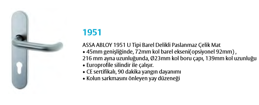 ASSA ABLOY ürünleri, en zorlu standartlara göre sertifikalandırılmıştır. Elektromekanik çözümlere, en yeni trendlere uyarak ve maliyetleri düşürmek için teknik ürünlerden elektromekanik çözümlere en yeni dizayn trendlerine uyarak. Ayrıca ASSA ABLOY ürün gruplarından olan kilit, silindir ve kol serisi ile mükemmel bir şekilde entegre edilmiştir.